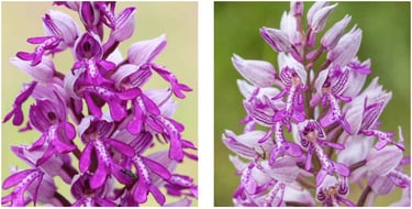 Die durch Hybridisierung entstandenen Pflanzen sind oft größer und kräftiger als ihre beiden Elternarten und dadurch meist auffälliger (Heterosis-Effekt). Das hier gezeigte Hybrid-Knabenkraut (Orchis × hybrida) – Kreuzung aus Helm- und Purpur-Knabenkraut – und das Spuria-Knabenkraut (Orchis × spuria) – Kreuzung aus Helm-Knabenkraut und Puppenorchis – verdeutlichen dies exemplarisch. Darüber hinaus sind sie widerstandsfähiger gegen Krankheiten und anpassungsfähiger an ihren Lebensraum und können sich deshalb am Wuchsort oftmals besser behaupten.