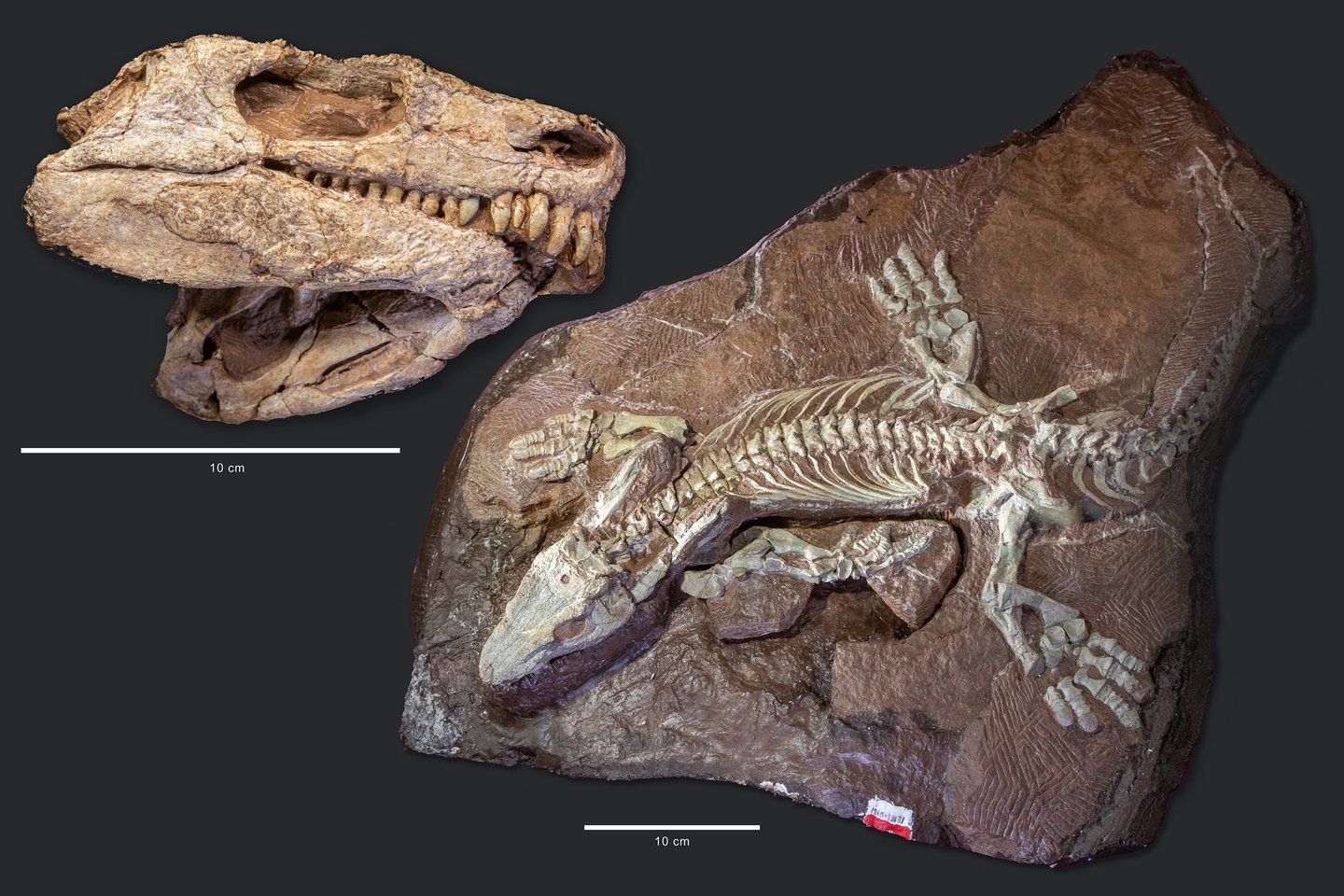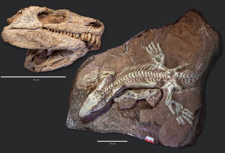 Skelett, Schädel und fossile Baue von Orobates pabsti