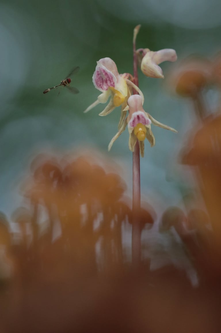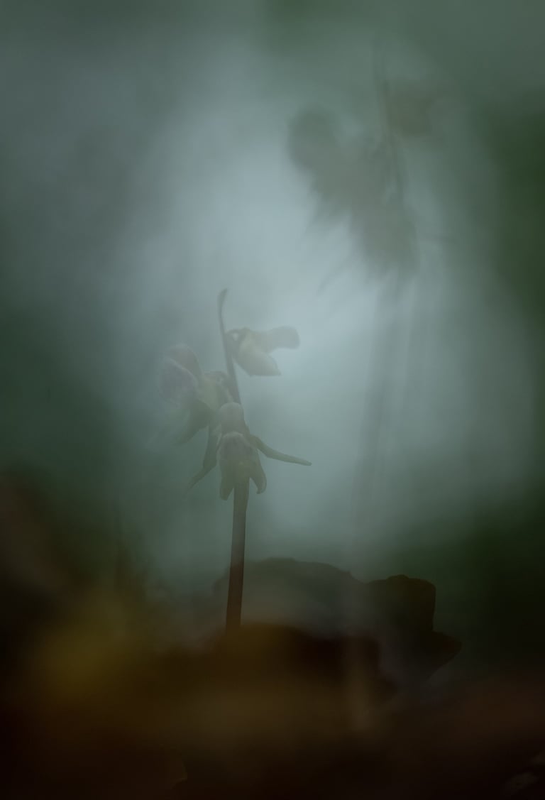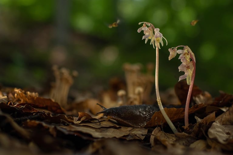 Ghost orchid - die Geisterorchidee, sein englischer Name beschreibt das geheimnisvollen Wesen des Blattlosen Widerbarts (Epipogium aphyllum) sehr passend. Diese äußerst seltene und hochspezialisierte Orchidee hat sich in ihrem Überlebenstrieb sehr weit in das Reich der Pilze hinein gewagt – ja er mutet selbst kaum noch als echte Pflanze an.