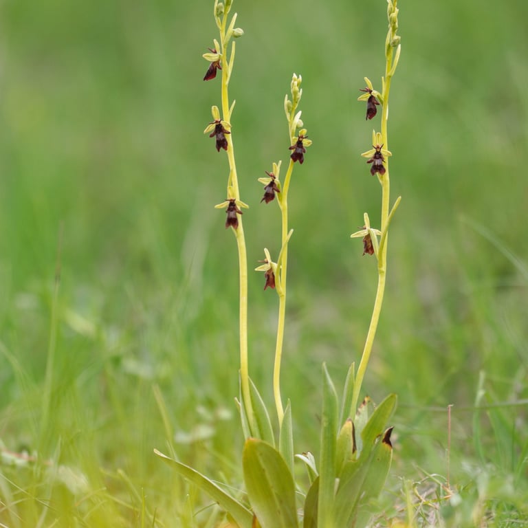 Die Sexualtäuschblüten der Fliegen-Ragwurz (Ophrys insectifera)
