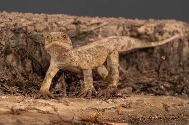 Eudibamus is an extinct genus of the family Bolosauridae that lived during the Permian, approximately 280 million years ago. These enigmatic vertebrates are assigned to the so-called parareptiles ("reptile-like"), as they exhibit reptiliomorph features in their anatomy despite their great age—even though they are significantly older than any true reptiles as we know them today. Parareptiles represent a distinct group: an evolutionary experiment that took place long before the divergence of vertebrates into amphibians, reptiles, and mammals. The only known skeleton of Eudibamus cursoris was discovered at the world-famous Bromacker quarry in Thuringia (Central Germany), one of the most significant sites for early terrestrial vertebrates worldwide.