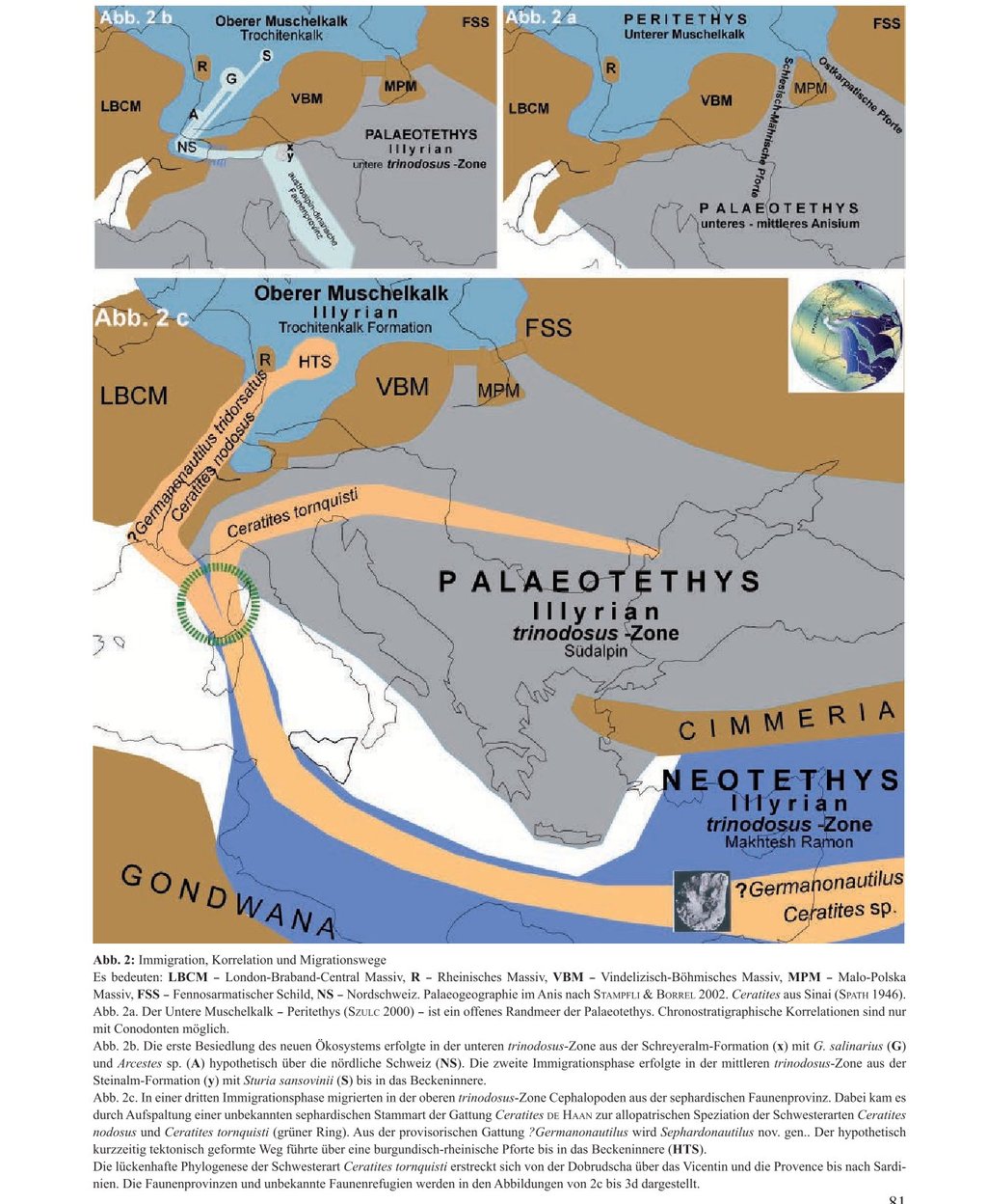 From the Austroalpine faunal province, Sturia sansovinii migrated along the same route into the basin interior during the middle trinodosus zone, cladogenetically forming the new species Sturia brandti n. sp.