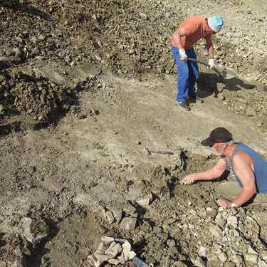 On the fossil layer, the work continues with fine tools – and the effort is rewarded with the hoped-for finds.
